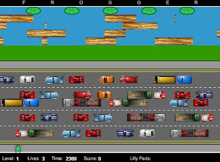 remember when everyone had games on their calculators? it was super high tech to have tetris or poker or that drug mafia game on your TI-83. and when you were playing in class, it just looked like you were doing a complicated math problem and not playing a game. well, remember the game frogger? you had a little frog and you had to get him through several lanes of cars and trucks, safely to the other side. it was a classic.